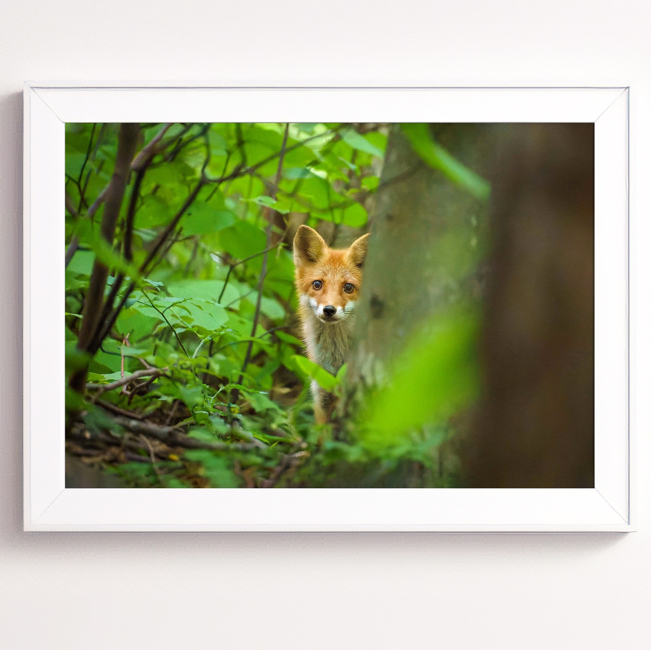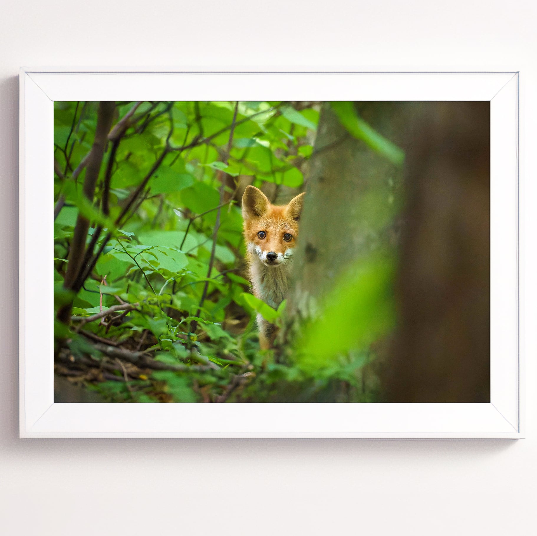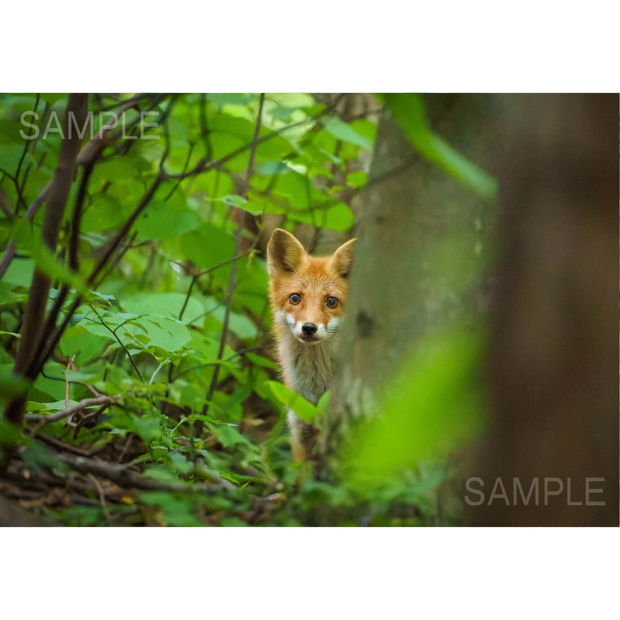 【A4可能】夏の森の若いキタキツネ