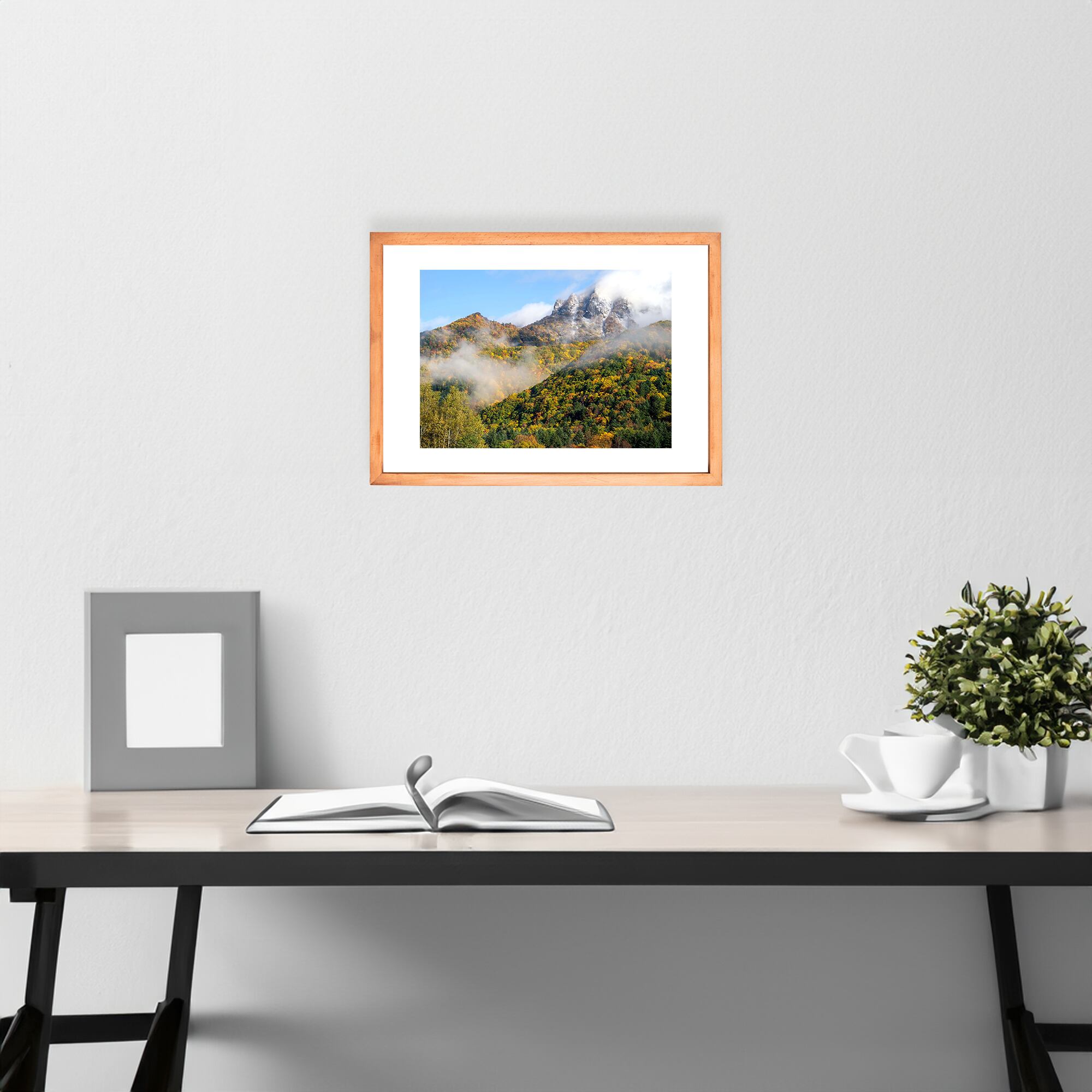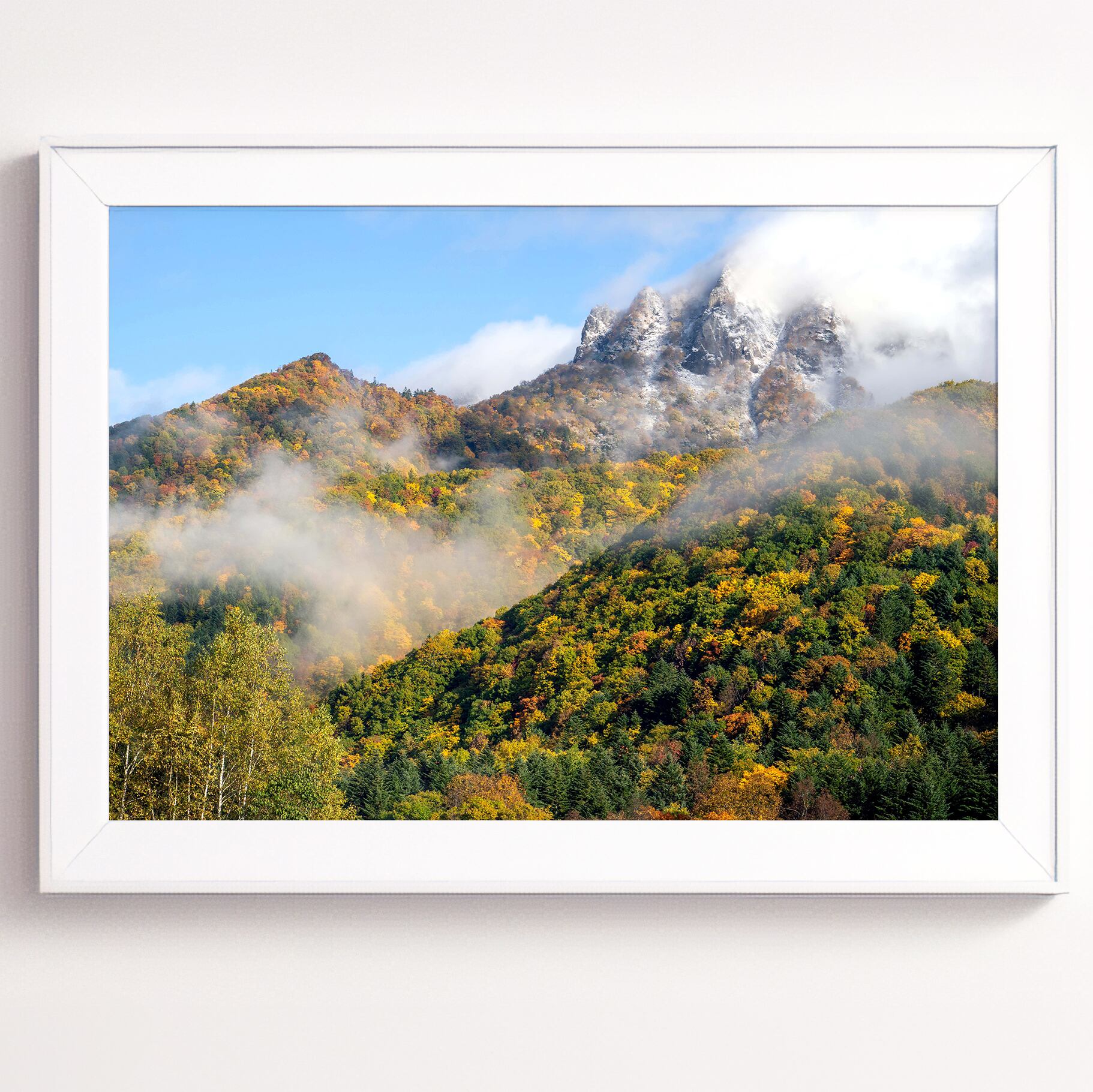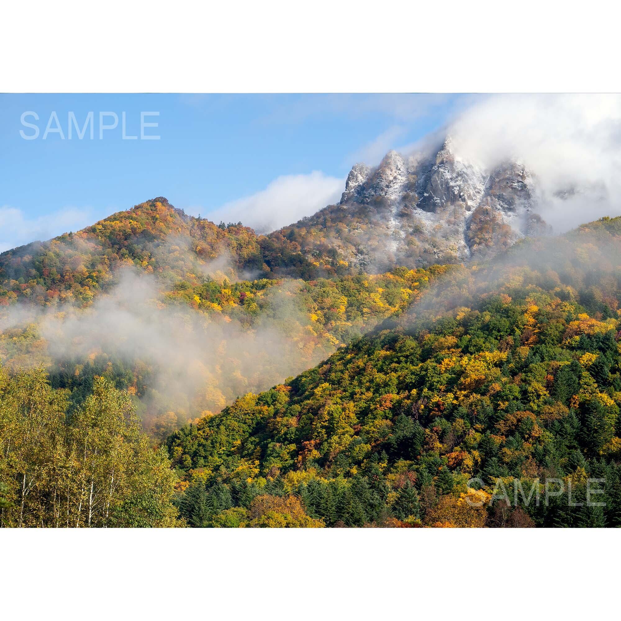 【A4可能】紅葉と山頂の初冠雪
