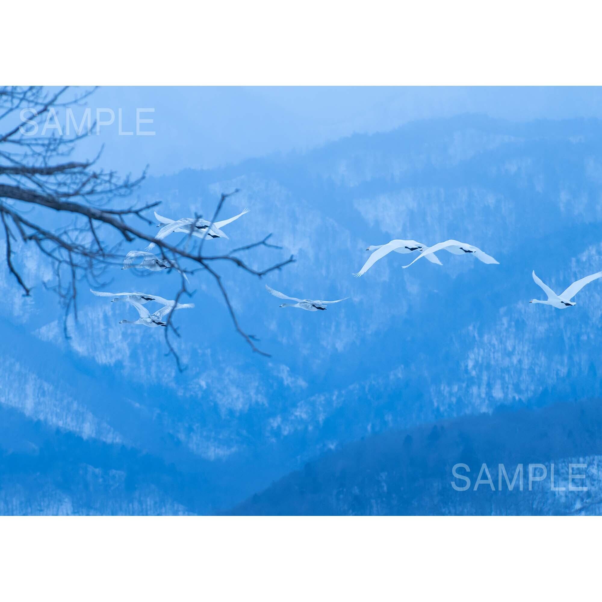 【2L写真】寝床へ帰る白鳥の群れ
