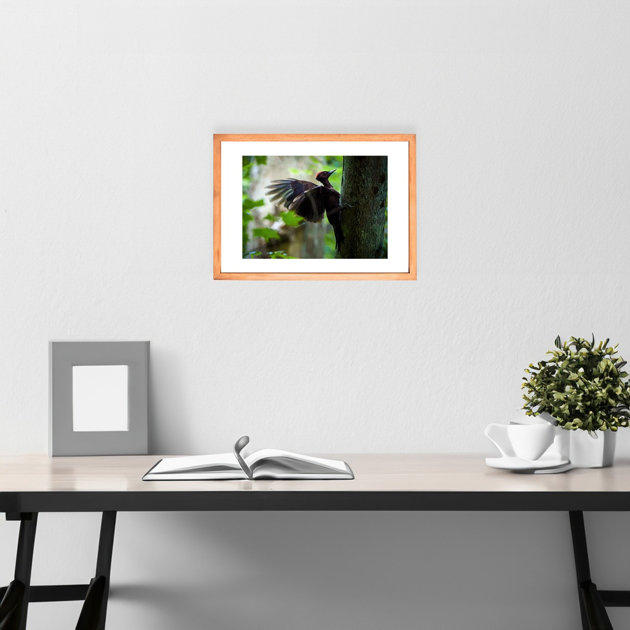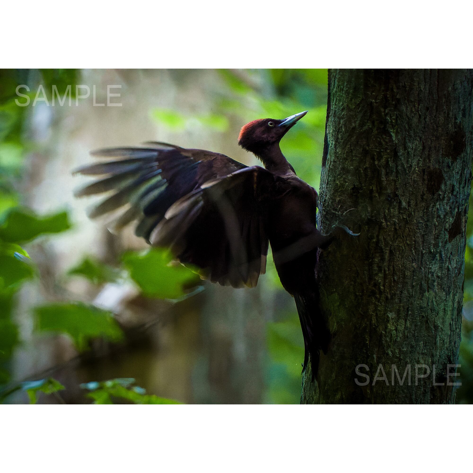 【A4可能】羽を広げる森のクマゲラ