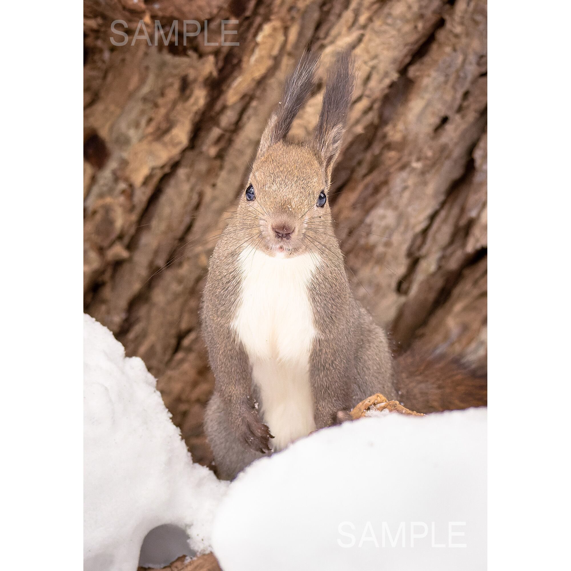 雪の中を駆け回っていたエゾリス。その一瞬を高速シャッターで切り抜きました。