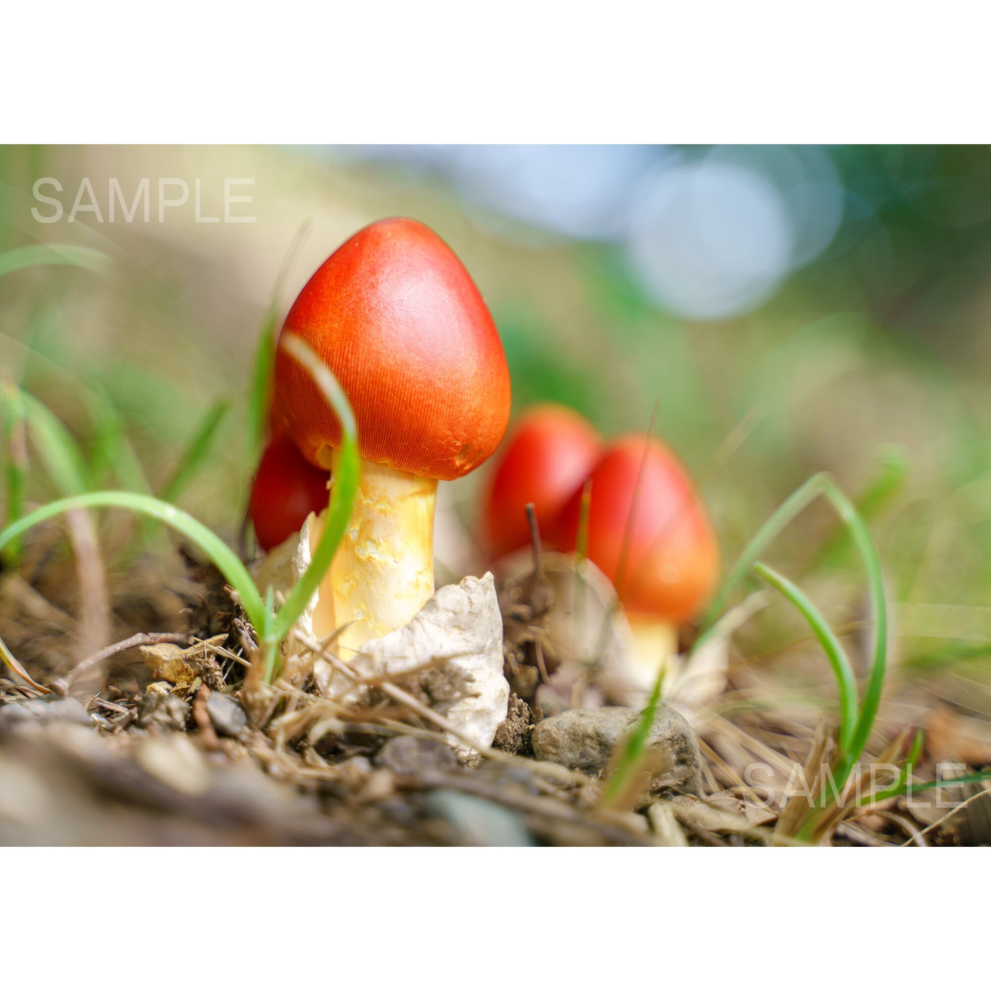 【A4可能】赤いきのこ、タマゴタケの群生・その1